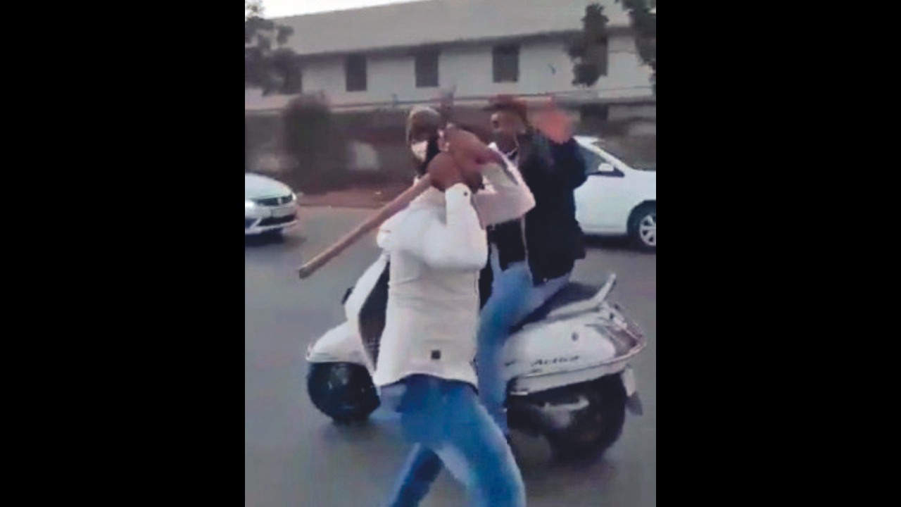 AHMEDABAD: A video of three cops being thrashed by a bootlegger and his aides in Naroda area on Thursday went viral on social media.