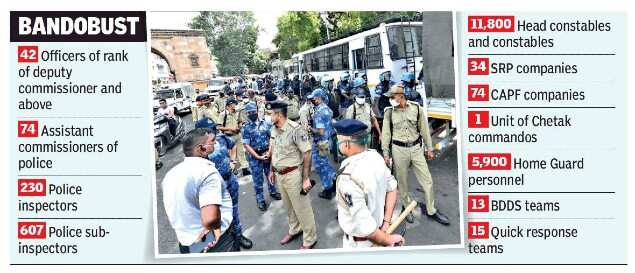 These areas will be barricaded so no one can enter. Devotees have been asked to glimpse Lord Jagannath, Lord Balbhadra and Goddess Subhadra from their television sets and to avoid coming to the route of the Rath Yatra. There will be three-layered bandobast on the route, with around 20,000 police personnel apart from Home Guard jawans and paramilitary personnel deployed.