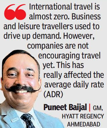 “At least three new properties were launched in the Ahmedabad-Gandhinagar market even after the pandemic, when the hospitality industry took a major hit. The city already had an over-supply situation. With fewer events and a bare minimum revival in corporate movement, the demand is not buoyant enough and therefore, ADR has taken a major hit,” said Narendra Somani, president, Hotels and Restaurants’ Association (HRA) – Gujarat. With more supply and lesser demand, the market has become largely price driven, according to industry players. “Five-star properties are offering competitive rates to gain business after a slump over the past few months. Therefore, the ADRs have failed to pick up despite a buoyant demand,” Somani added.