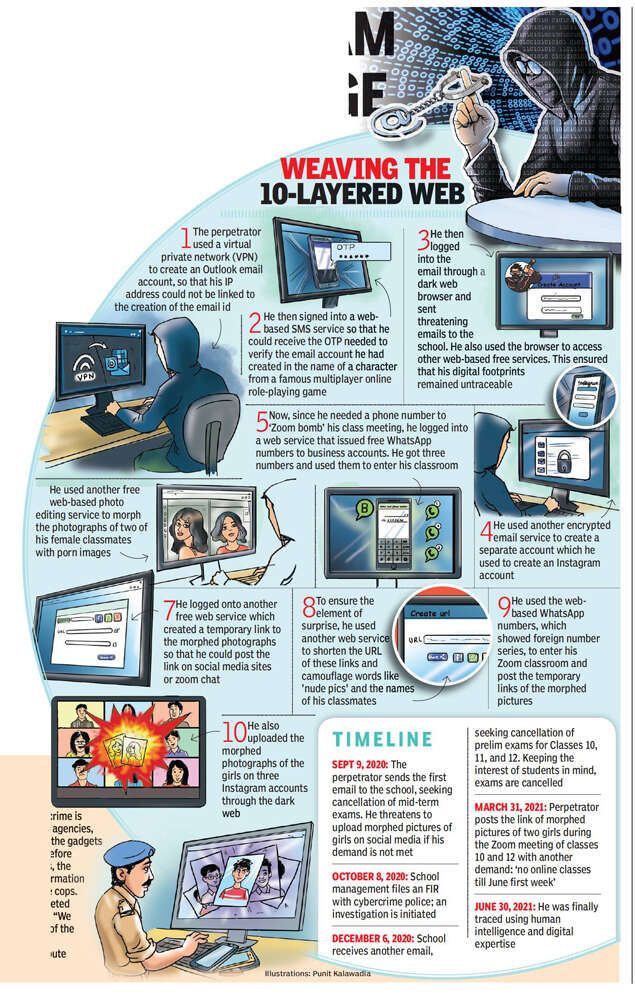 After months of futile efforts to trace the culprit who first sent an email in September threatening to post morphed pictures of students online if the school did not defer mid-term and preliminary exams, the police reached an impasse. The perpetrator had used the dark web to commit the crime and the case had turned into one of the most complicated cybercrime case that the Ahmedabad police had faced till date. This, even though they had roped in central and US investigative agencies. A senior officer said, “In the first