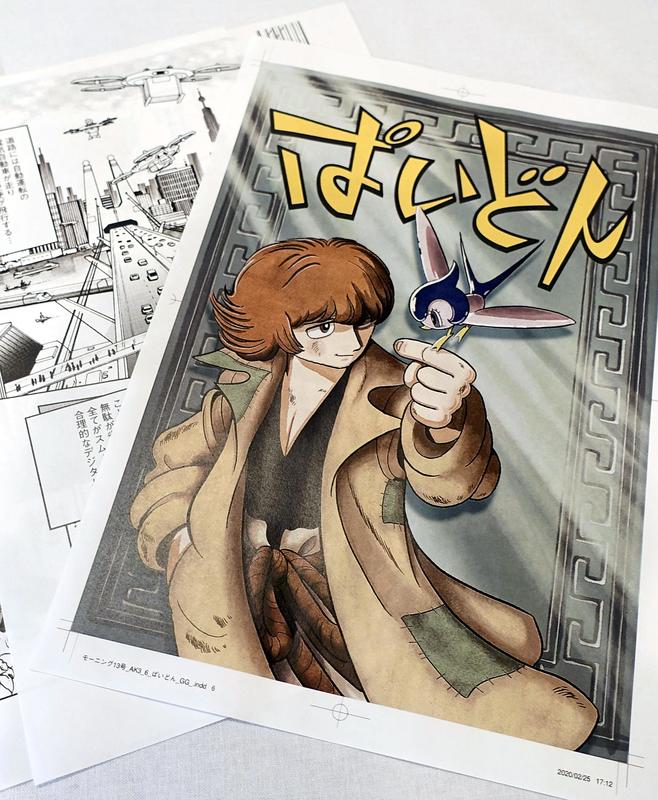 The new manga is called "Paidon." The story is set in Tokyo in 2030 and follows a mysterious homeless philosopher who becomes a detective and takes on a case, accompanied by a small robot bird as his partner.
