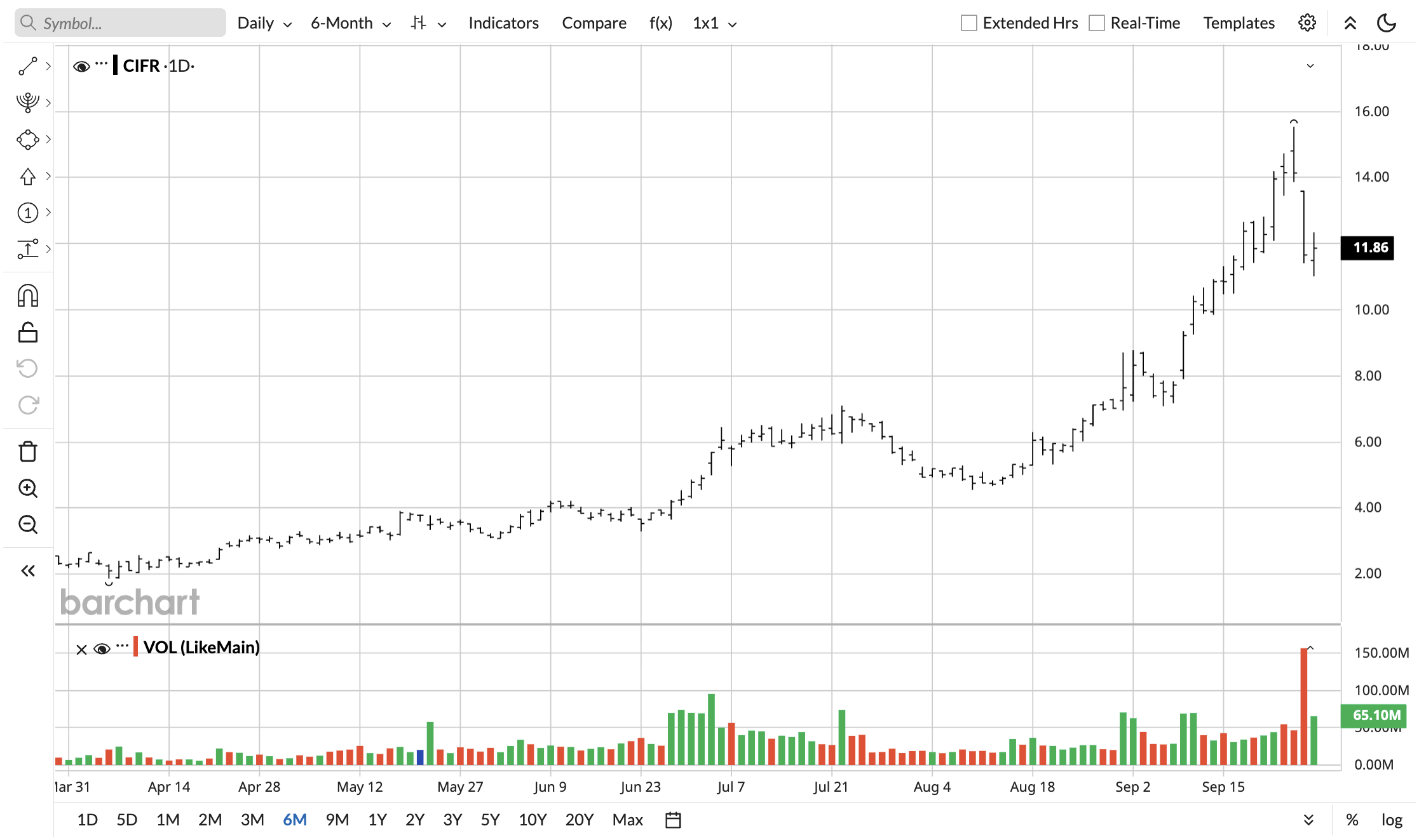 Cipher Mining (CIFR) has been similarly explosive, up 70.6% in just the past month.
