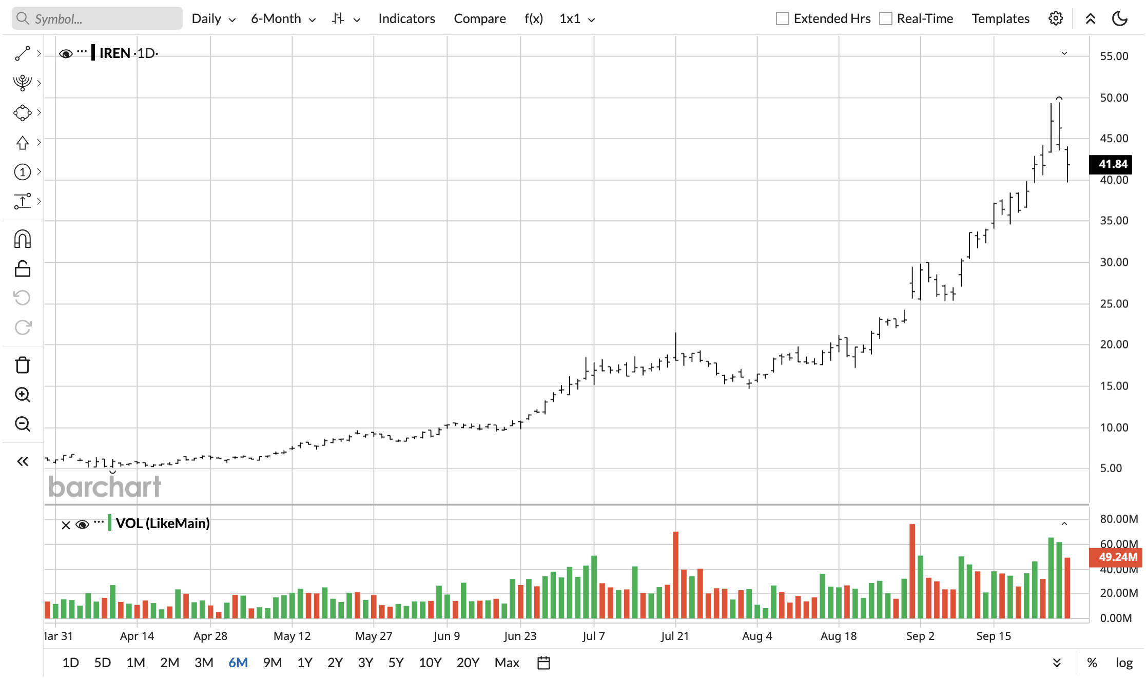 IREN stock has already been up 526% in just the past six months and 1,080% in the past 24 months.