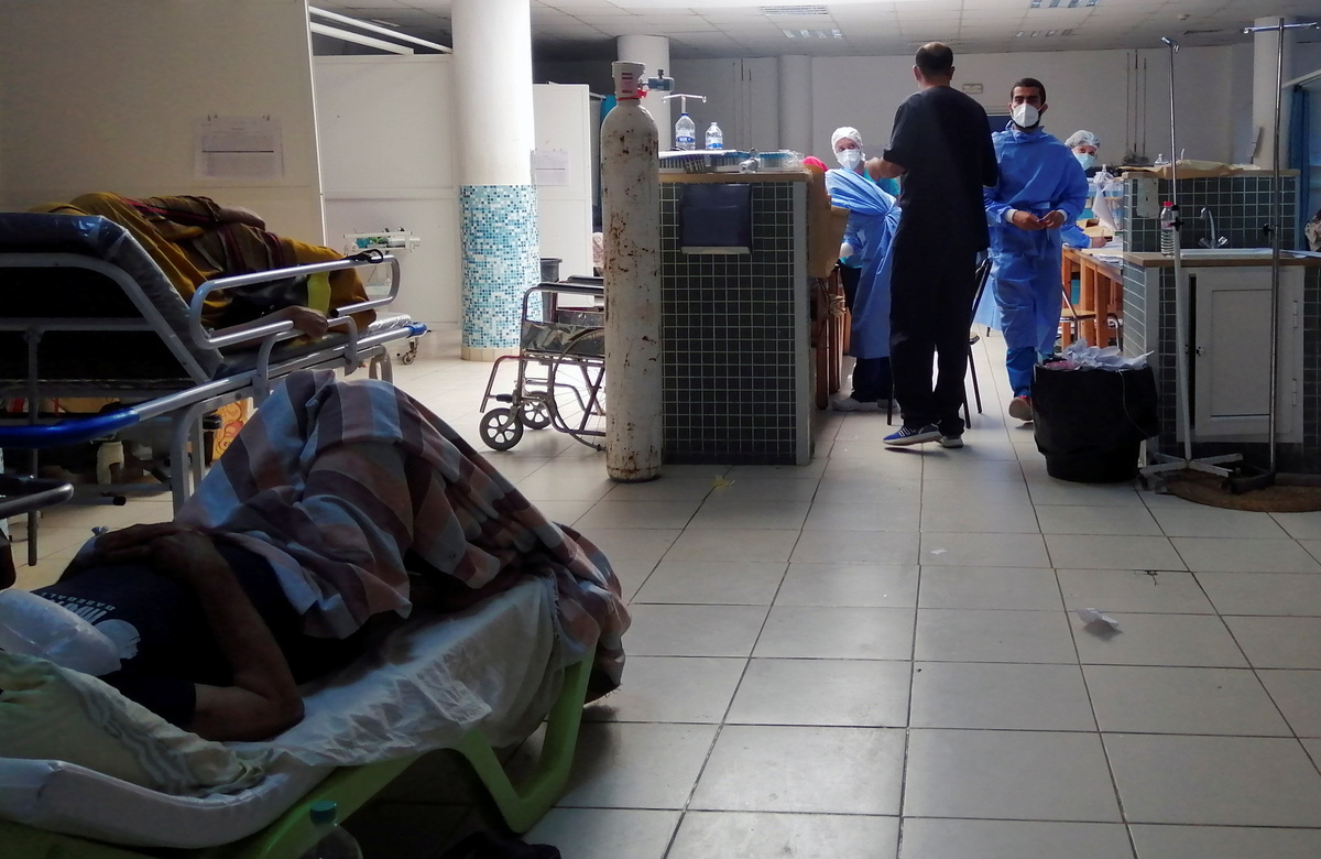 In Charles Nicolle Hospital in the Tunisian capital, the emergency department is filled with patients who are sharing oxygen in rooms and even hallways.