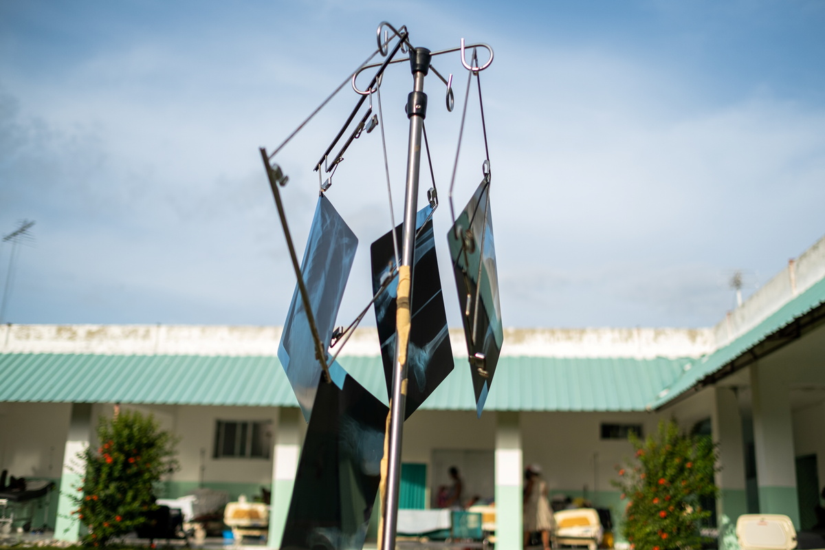 One of the patients was a girl who had debris embedded in a gash just below her knee, which cut down to the bone. She screamed in pain as the doctors cleaned and disinfected the wound without anesthesia.