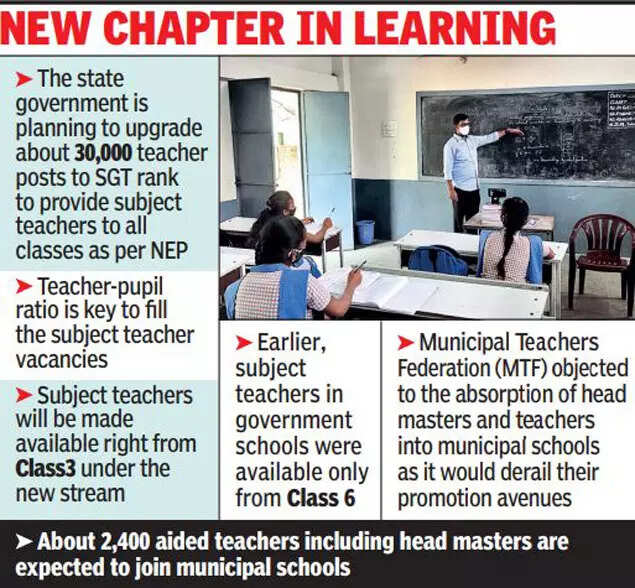 With chief minister YS Jagan Mohan Reddy directing the school education department to promote all school teachers to upgrade them as subject teachers to meet the criteria of student-teacher ratio as per the National Education Policy (NEP), the department decided to fill the existing vacancies with the aided teachers.