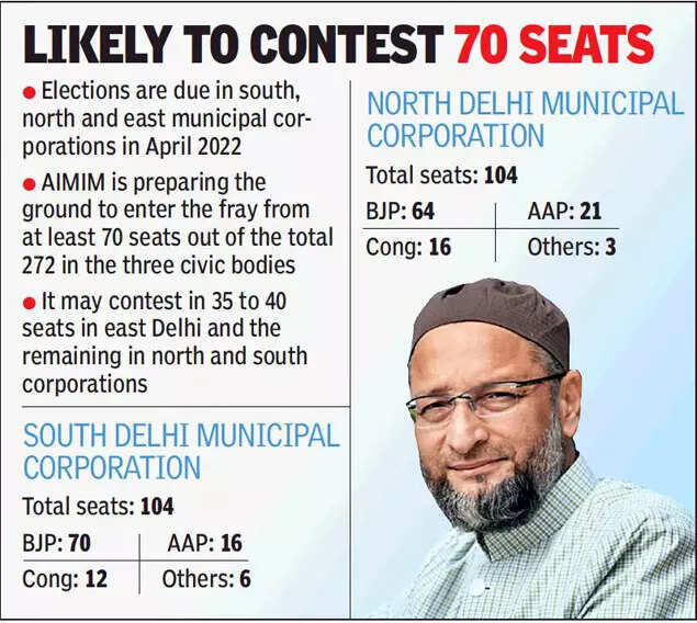 Elections are due in south, north and east municipal corporations in April 2022 and the AIMIM is preparing the ground to enter the fray from at least 70 seats out of the total 272 in the three civic bodies.
