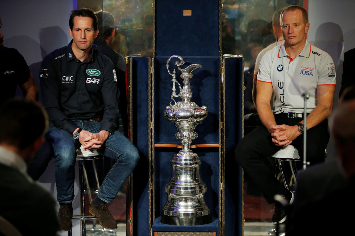 Skipper Ben Ainslie had to throw in the towel after coming to an abrupt halt in the second leg of the widely-anticipated race against the New Zealand crew, which was postponed due to a lack of wind in Bermuda's Great Sound on Sunday.