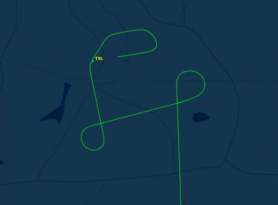 The flight touched down 75 minutes late — having flown much further than normal in order to inscribe a heart shape into its flight path. Air Berlin’s signature has been to give passengers heart-shaped chocolates on departure, and air-traffic controllers cooperated in the stunt.