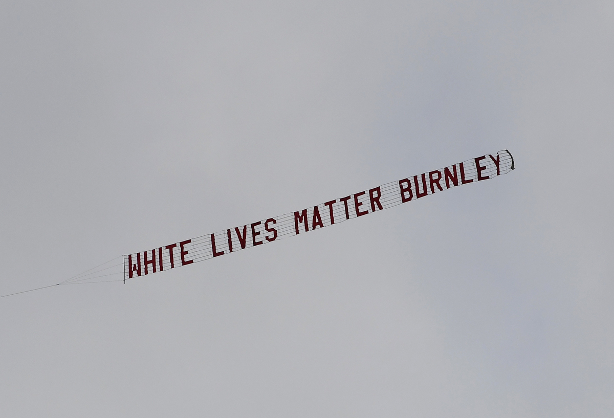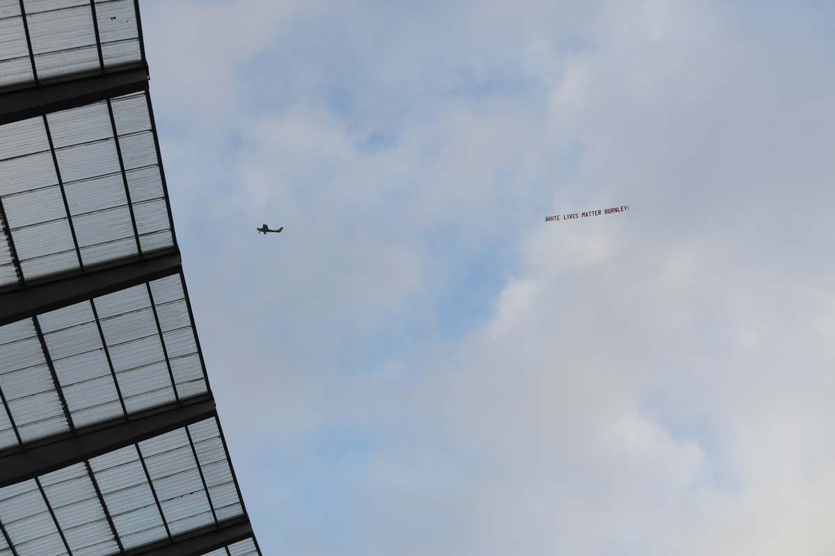 Police were making enquiries and a local airport suspended banner-towing operations on Tuesday after a plane flew over Manchester City's stadium trailing the message 'White Lives Matter Burnley' at the start of a Premier League game on Monday.