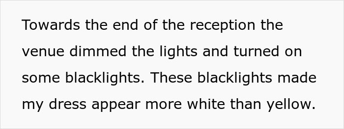 A woman wore a yellow dress to her friend’s wedding, thinking it would be a safe color