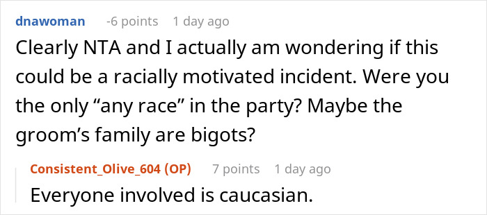 The bride and groom didn’t seem to have any problem with the dress, it was just one family member