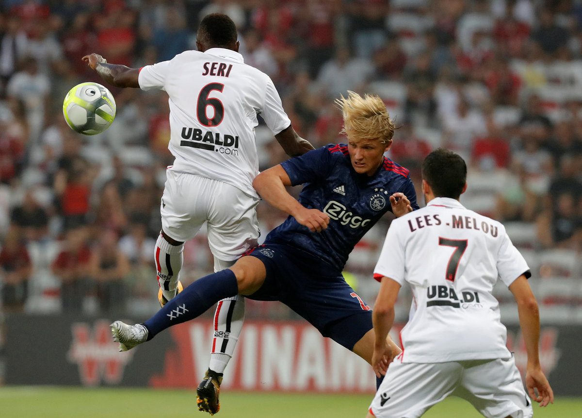Soccer Football - Champions League - OGC Nice vs Ajax Amsterdam - Third Qualifying Round First Leg - Nice, France - July 26, 2017 Nice's Jean Seri in action with Ajax's Kasper Dolberg REUTERS/Eric Gaillard