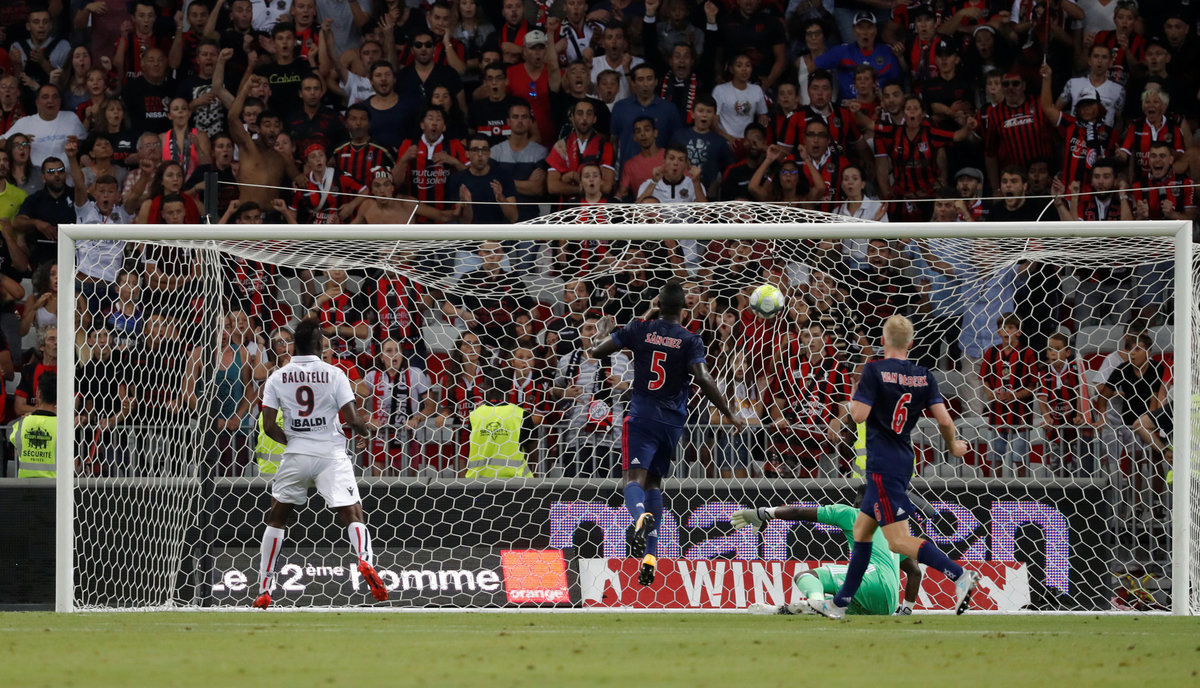 Italy striker Mario Balotelli fired Nice ahead with a close-range finish after a darting run by midfielder Jean Michael Serri in the 32nd minute.