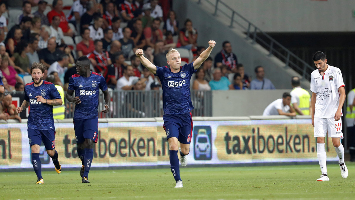 Soccer Football - Champions League - OGC Nice vs Ajax Amsterdam - Third Qualifying Round First Leg - Nice, France - July 26, 2017 Ajax's Donny van de Beek celebrates scoring their first goal REUTERS/Eric Gaillard