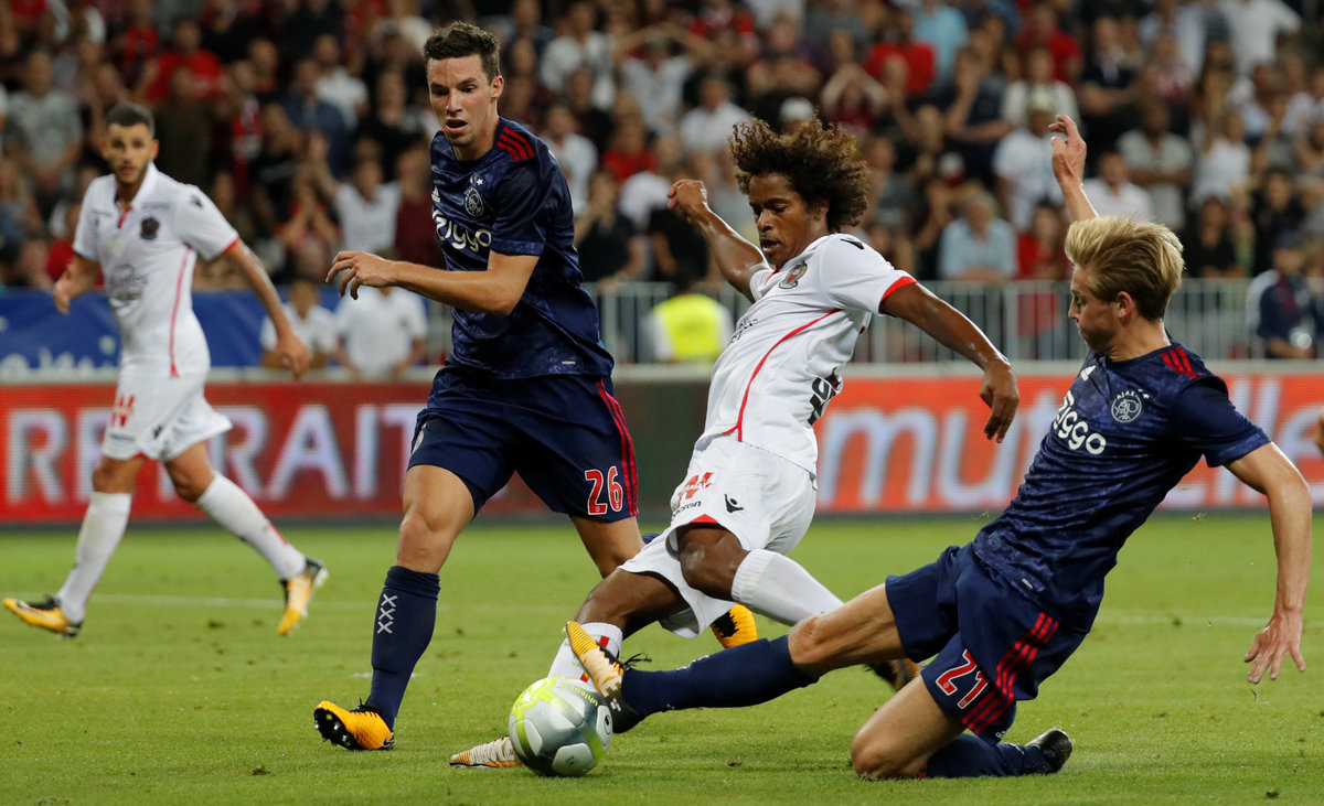 Soccer Football - Champions League - OGC Nice vs Ajax Amsterdam - Third Qualifying Round First Leg - Nice, France - July 26, 2017 Nice's Vincent Koziello in action with Ajax's Donny van de Beek REUTERS/Eric Gaillard