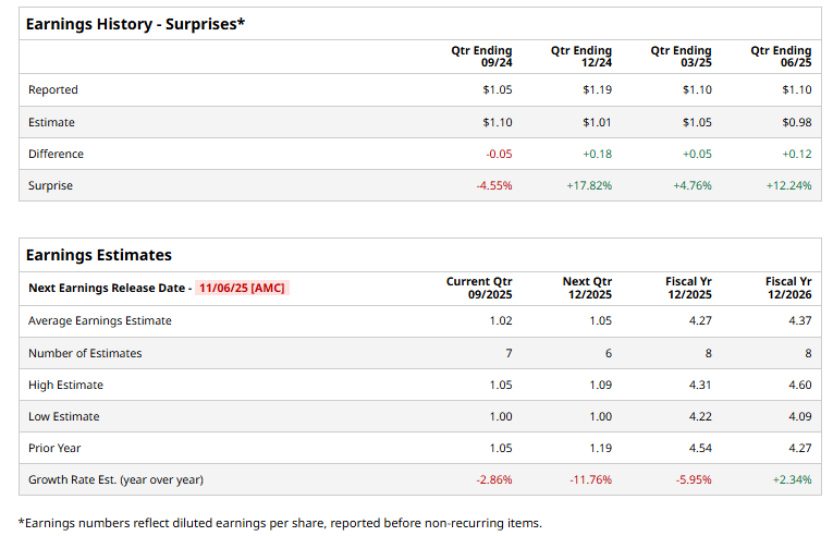 AKAM is slated to announce its fiscal Q3 2025 earnings results after the market closes on Thursday, Nov. 6. Ahead of this event, analysts expect the company to report a profit of $1.02 per share, a 2.9% drop from $1.05 per share in the year-ago quarter. It has exceeded Wall Street's earnings expectations in three of the past four quarters while missing on another occasion.