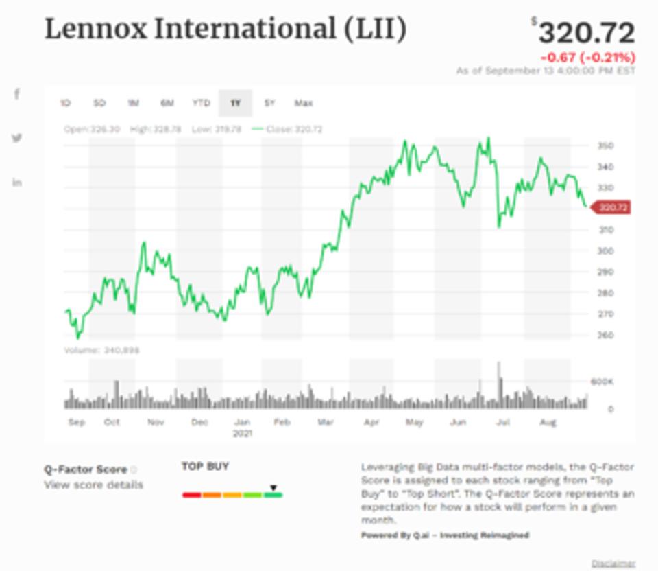 Lennox International Inc is our third Top Buy today. Lennox International Inc.