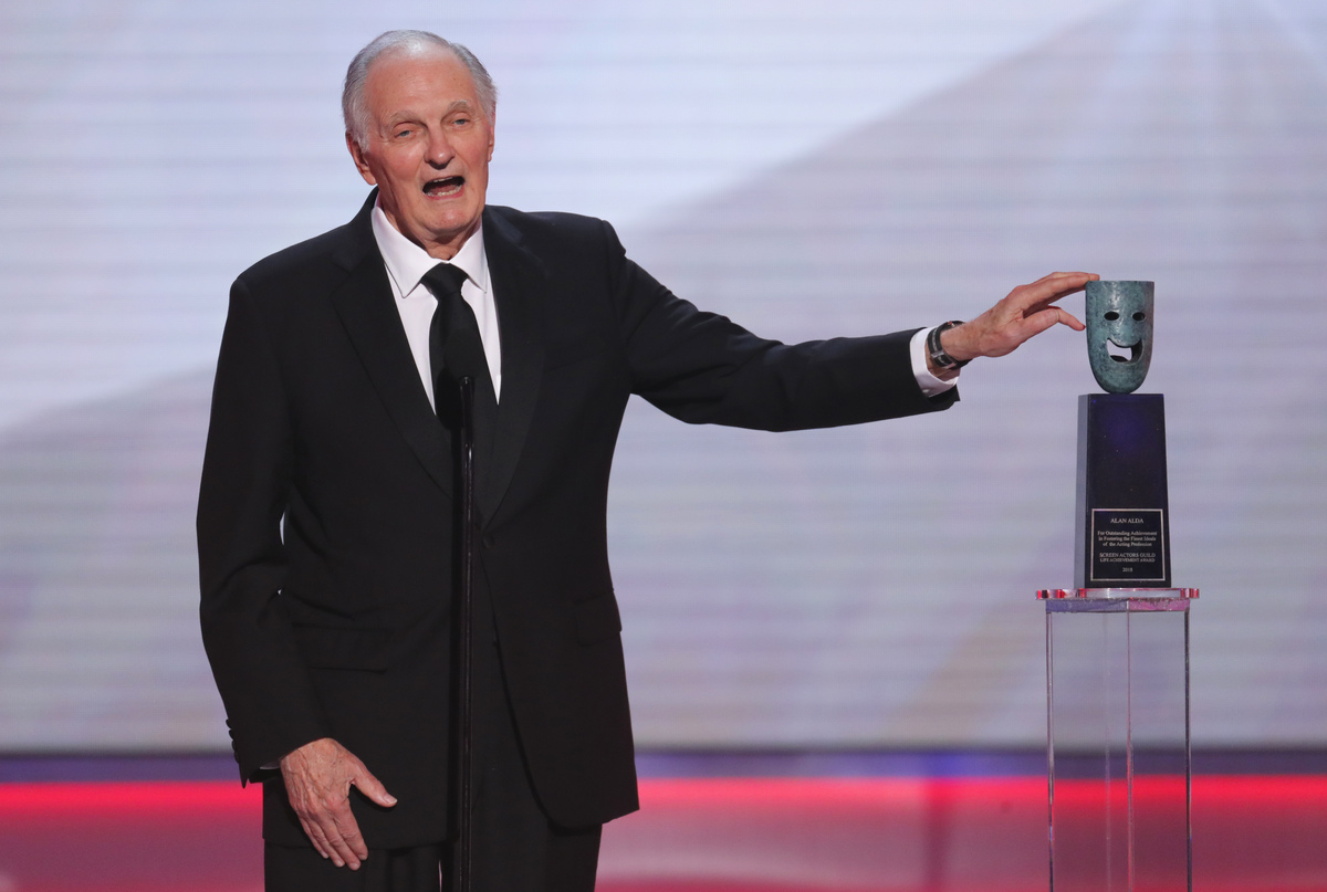 "I see more than ever how proud I am to be part of our brotherhood and sisterhood of actors," Alda said, after receiving a sustained standing ovation from his peers.