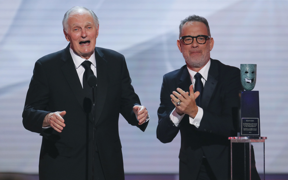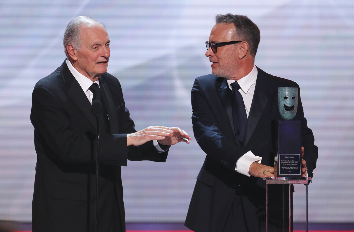 Alda, 82, who announced in July that he had been diagnosed with Parkinson's disease three years earlier, was presented the honor by film star and one-time-costar Tom Hanks at the Screen Actors Guild (SAG) awards dinner in Los Angeles.