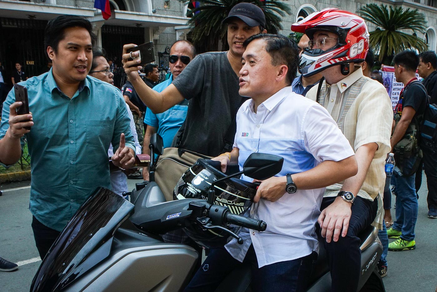 After filing, Cayetano was met by resigned Special Assistant to the President Bong Go a few blocks away from the Comelec building. Go, a senatorial hopeful, also stepped down to run.