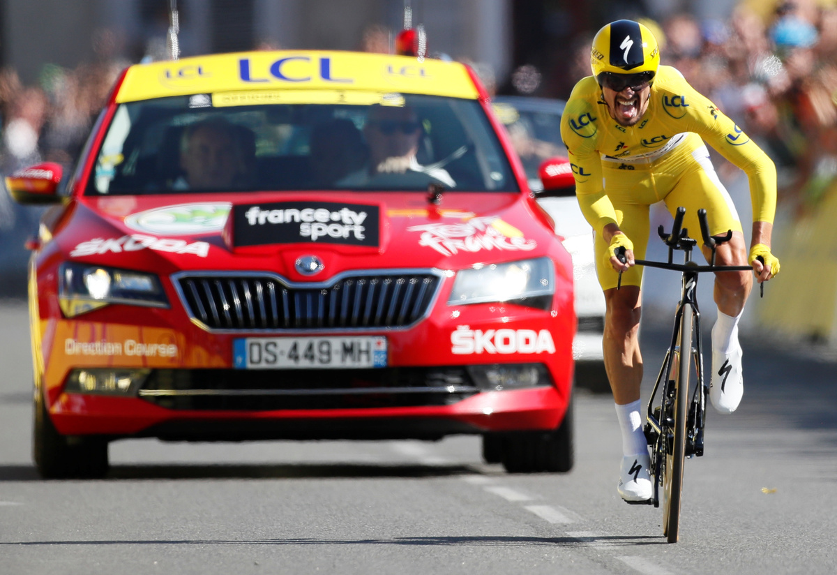 The time trial was a sobering moment for Briton Adam Yates, who slid down to 10th in the GC after losing 2:08 on Alaphilippe.