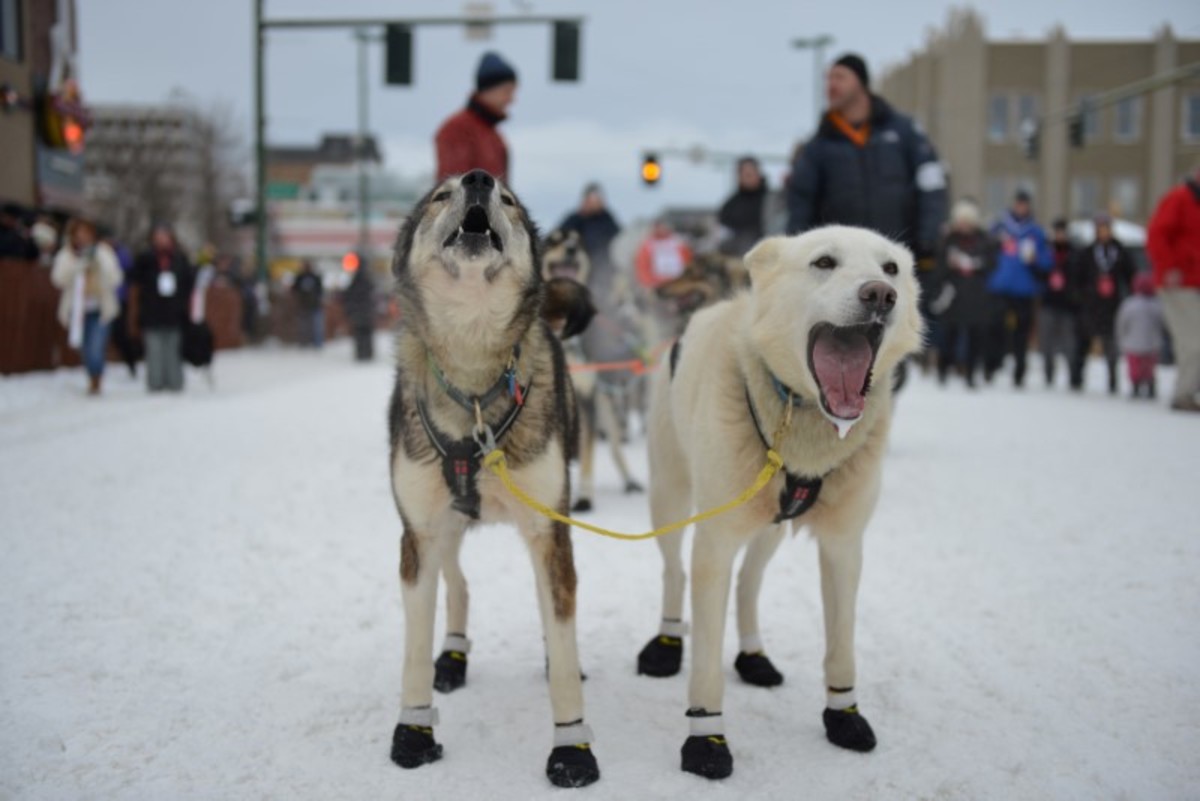 The start of the race on Saturday drew hundreds of celebrants, who packed the sidewalks. Fans petted mushers' dogs and musher assistants - called handlers - sported matching team jackets. Politicians including U.S. Sen. Lisa Murkowski mingled with the crowd.