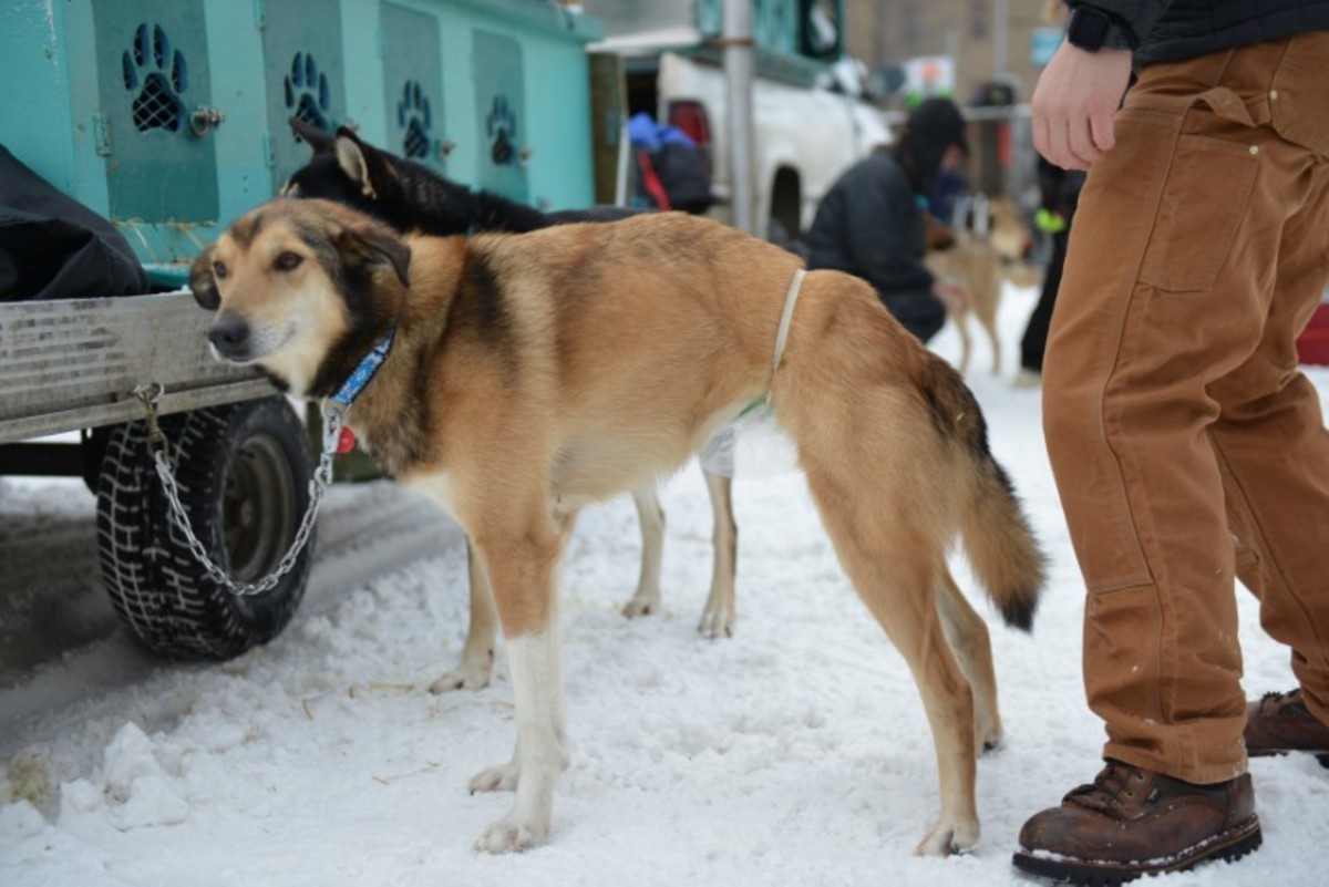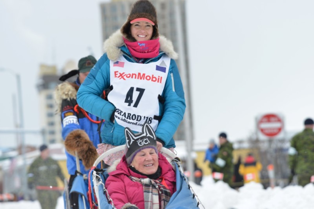 Many wore costumes. Musher Dee Dee Jonrowe, 65, a top racer who plans to retire after this year, was decked out in her trademark pink. Her truck is pink as are the booties and leashes worn by her dogs.