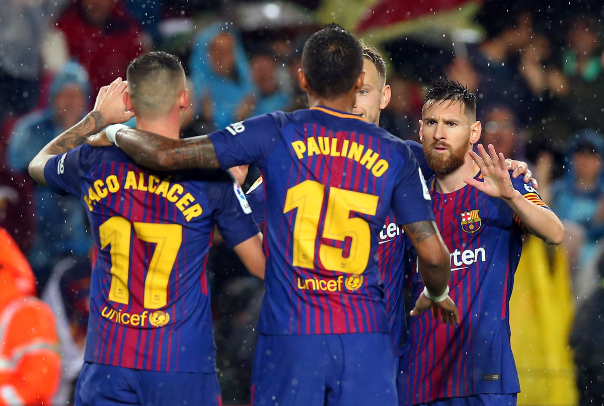 Although all eyes were on Lionel Messi playing in his 600th game for Barca, it Alcacer who was on target for his side in the pouring rain in the Catalan capital.