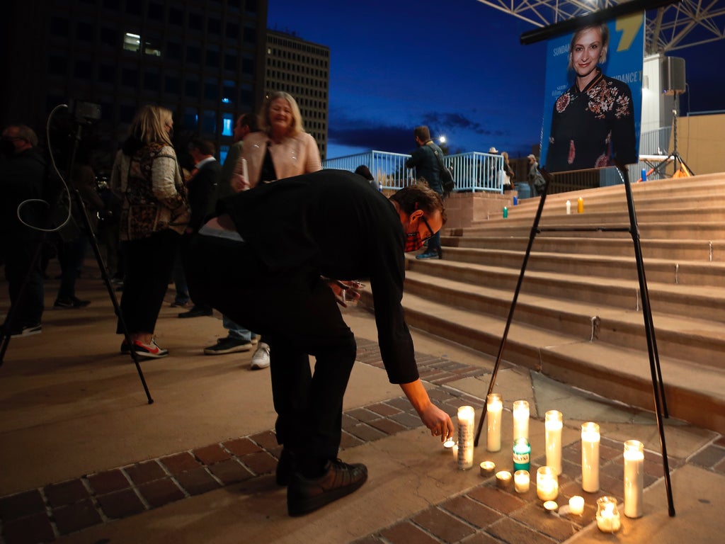 Hundreds have attended a vigil for cinematographer Halyna Hutchins in Albuquerque, New Mexico — not far from the Rust film set in Santa Fe, where she was fatally shot by Alec Baldwin, the Hollywood actor, during an apparent on-set incident.