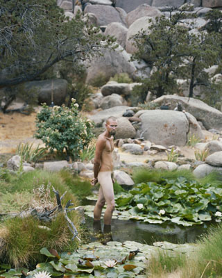On another wall, a huge print of an intense, nude young man standing ankle-deep in a pool of water in an Edenic landscape speaks volumes about Soth’s powers of persuasion and his ability, particularly in portraits, to blur the line between fine art and documentary. The image is almost classical – man in his natural state in an unsullied landscape – but the intense stare and shaved head hints at the social discontent that often drives this kind of retreat from mainstream in the US.