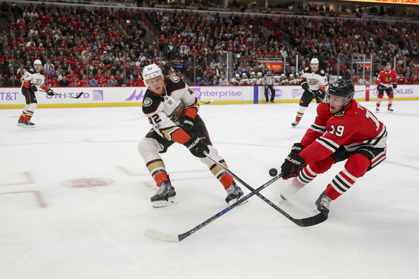 It was a good time to be facing the Ducks and DeBrincat and the Hawks showed no mercy. DeBrincat got on the board 16 minutes, 22 seconds into the first period thanks in part to a smooth pass from Nick Schmaltz. Schmaltz shuffled the puck from behind the net and through the slot to DeBrincat at the right circle and DeBrincat one-timed the shot past Ducks goaltender John Gibson.