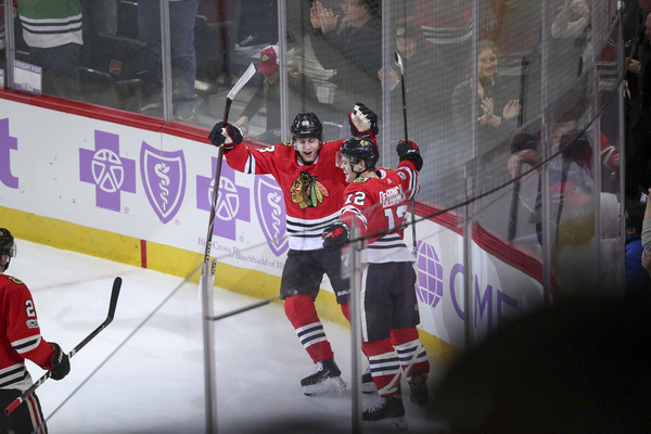 Before goal No. 3, the crowd could sense the hat trick coming. The Hawks were on a 4-on-3 power play and DeBrincat had a 2-on-1 with Patrick Kane. The United Center held its breath as Kane held onto the puck and DeBrincat raced to the corner of the net. Kane sent a perfect pass to DeBrincat's tape and DeBrincat lifted the puck into the net at 14:14. The hats came flying as DeBrincat stood with his arms out soaking in the adoration.
