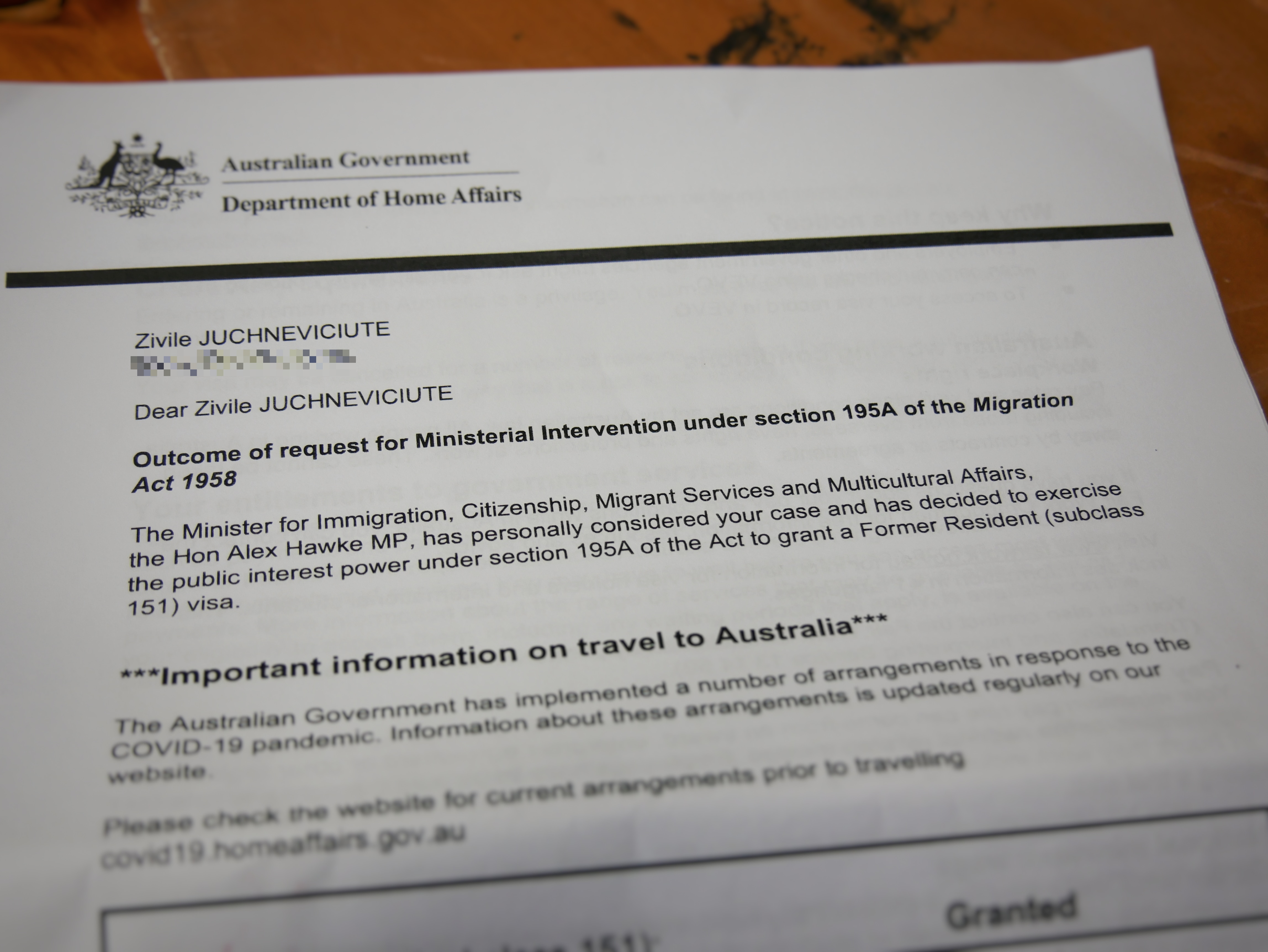 Outgoing immigration minister Alex Hawke "personally considered" their case two days before the election and granted them former resident visas, letting them stay in Australia permanently.