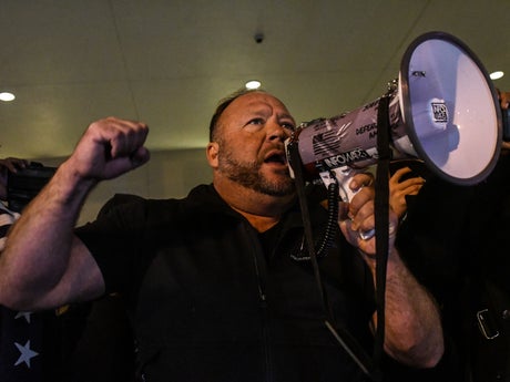 Mr Jones was reportedly seen later in the day, standing on top of a car near the Capitol building and shouting into a bullhorn.