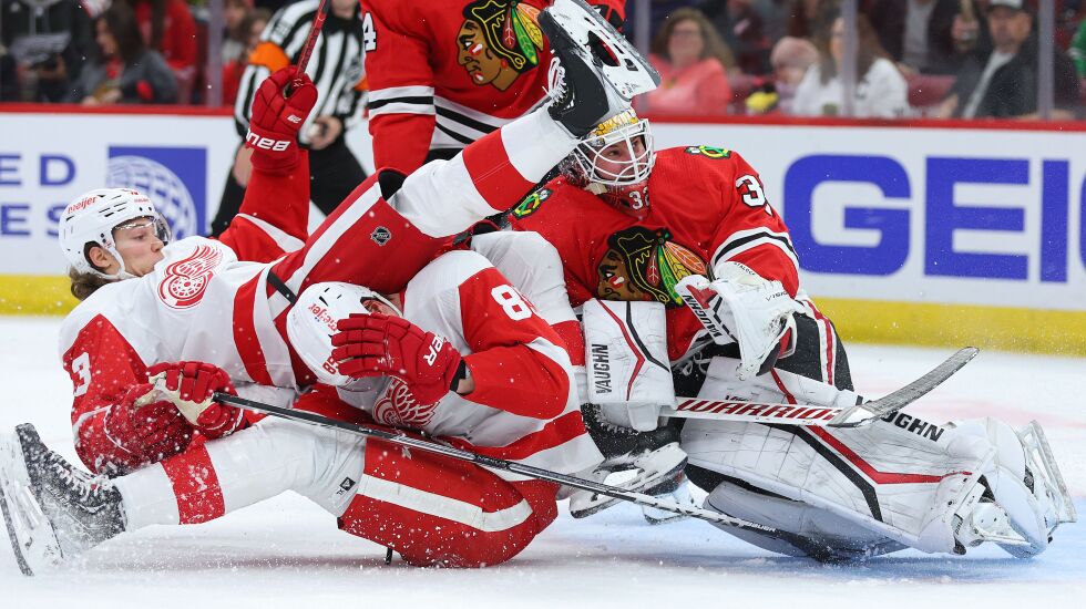 He did allow four goals Sunday against the Kraken, but he was hardly at fault for any of them, and he made several key saves at key times that enabled the Hawks’ rally.
