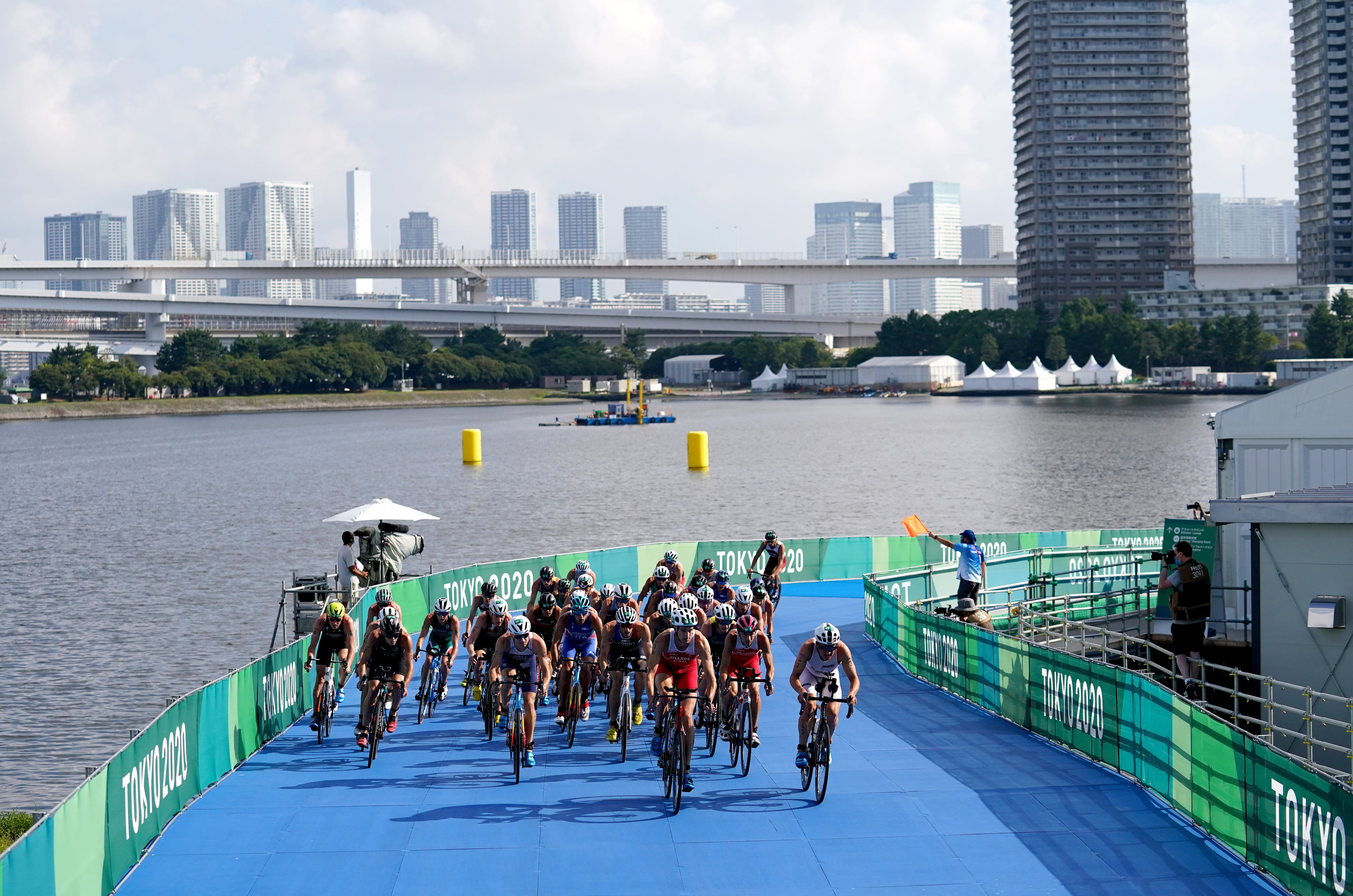 There were farcical scenes at the start when half the field dived in to begin the race while the other half stayed on the pontoon, blocked from entering the water by a boat.