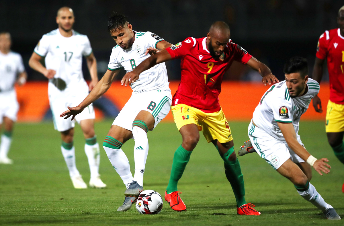 On Sunday, Algeria were quickly on the attack as a ball floated over the Guinea defence was chested down by Bounedjah but he fired wide.