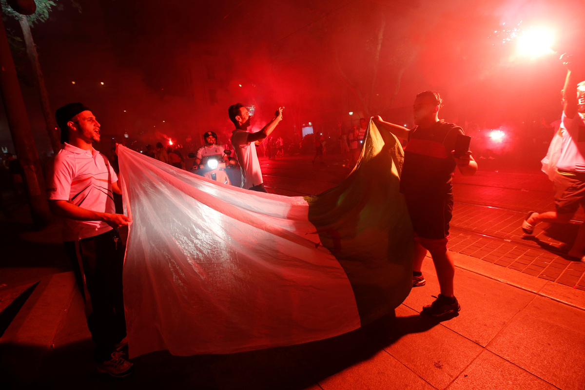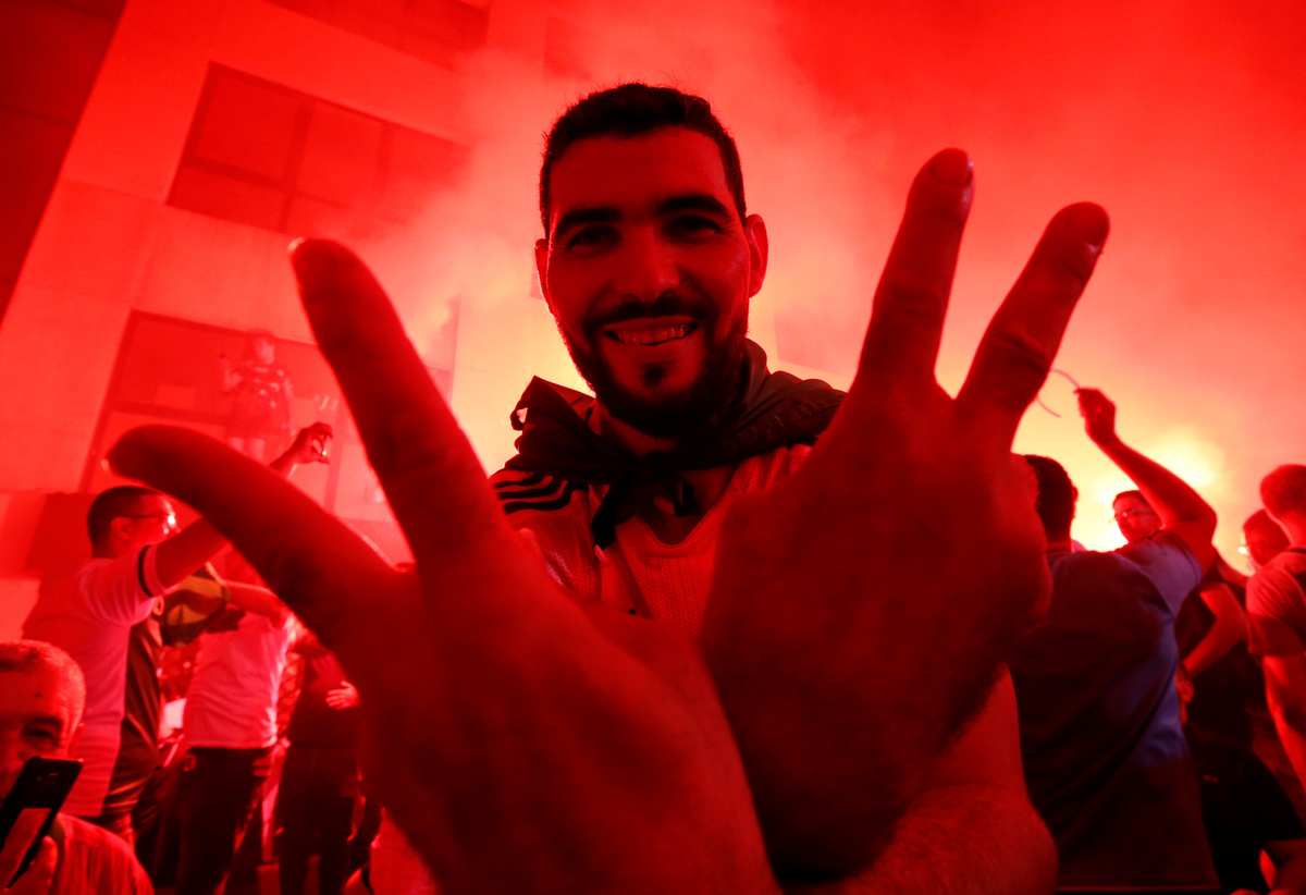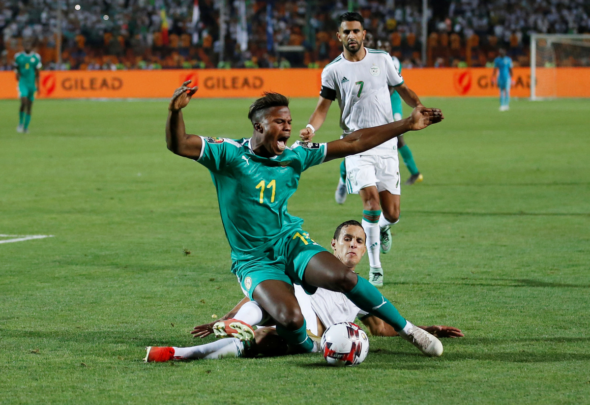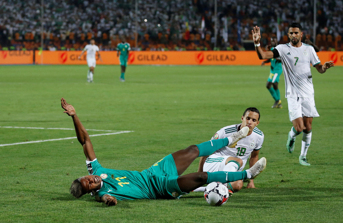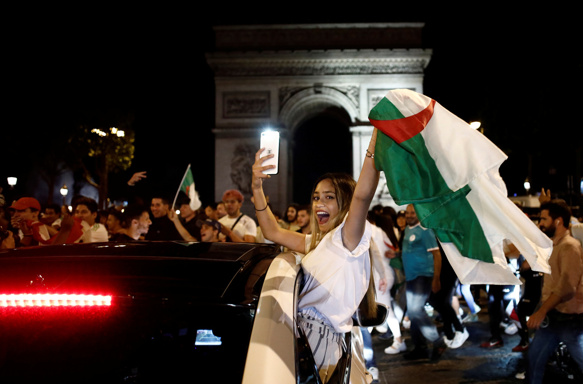 Soccer Football - Africa Cup of Nations 2019 - Final - Senegal v Algeria - Cairo International Stadium, Cairo, Egypt - July 19, 2019 Algeria celebrate winning the Africa Cup of Nations with the trophy REUTERS/Mohamed Abd El GhanySoccer Football - Africa Cup of Nations 2019 - Final - Senegal v Algeria - Cairo International Stadium, Cairo, Egypt - July 19, 2019 Algeria coach Djamel Belmadi and his team celebrate in front of their fans after winning the Africa Cup of Nations REUTERS/Mohamed Abd El GhanySoccer Football - Africa Cup of Nations 2019 - Final - Senegal v Algeria - Cairo International Stadium, Cairo, Egypt - July 19, 2019 Algeria's Yacine Brahimi and team mates celebrate in front of their fans after winning the Africa Cup of Nations REUTERS/Suhaib SalemSoccer Football - Africa Cup of Nations 2019 - Final - Senegal v Algeria - Cairo International Stadium, Cairo, Egypt - July 19, 2019 Algeria's Ramy Bensebaini and Baghdad Bounedjah celebrate winning the Africa Cup of Nations REUTERS/Suhaib SalemSoccer Football - Fans watch the Africa Cup of Nations 2019 - Final - Senegal v Algeria - Paris, France - July 19, 2019 Algeria fans celebrate in front of the Arc de Triomphe in Paris after the match REUTERS/Benoit TessierSoccer Football - Fans watch the Africa Cup of Nations 2019 - Final - Senegal v Algeria - Marseille, France - July 19, 2019 Algeria fans celebrate winning the Africa Cup of Nations REUTERS/Jean-Paul PelissierSoccer Football - Africa Cup of Nations 2019 - Final - Senegal v Algeria - Cairo International Stadium, Cairo, Egypt - July 19, 2019 Senegal's Ismaila Sarr is consoled by team mates and Algeria's Riyad Mahrez after the match REUTERS/Sumaya HishamSoccer Football - Africa Cup of Nations 2019 - Final - Senegal v Algeria - Cairo International Stadium, Cairo, Egypt - July 19, 2019 Algeria coach Djamel Belmadi is thrown in the air by the players as they celebrate winning the Africa Cup of Nations REUTERS/Suhaib SalemSoccer Football - Fans watch the Africa Cup of Nations 2019 - Final - Senegal v Algeria - Marseille, France - July 19, 2019 Algeria fans celebrate winning the Africa Cup of Nations REUTERS/Jean-Paul PelissierSoccer Football - Africa Cup of Nations 2019 - Final - Senegal v Algeria - Cairo International Stadium, Cairo, Egypt - July 19, 2019 Algeria's Adlene Guedioura and team mates celebrate winning the Africa Cup of Nations at the end of the match REUTERS/Suhaib SalemSoccer Football - Fans watch the Africa Cup of Nations 2019 - Final - Senegal v Algeria - Paris, France - July 19, 2019 Algeria fans celebrate in front of the Arc de Triomphe in Paris after the match REUTERS/Benoit TessierSoccer Football - Africa Cup of Nations 2019 - Final - Senegal v Algeria - Cairo International Stadium, Cairo, Egypt - July 19, 2019 Algeria's Hichem Boudaoui celebrates after winning the Africa Cup of Nations REUTERS/Mohamed Abd El GhanySoccer Football - Africa Cup of Nations 2019 - Final - Senegal v Algeria - Cairo International Stadium, Cairo, Egypt - July 19, 2019 Algeria celebrate after winning the Africa Cup of Nations REUTERS/Mohamed Abd El GhanySoccer Football - Fans watch the Africa Cup of Nations 2019 - Final - Senegal v Algeria - Paris, France - July 19, 2019 Algeria fans celebrate in front of the Arc de Triomphe in Paris after the match REUTERS/Benoit TessierSoccer Football - Fans watch the Africa Cup of Nations 2019 - Final - Senegal v Algeria - Marseille, France - July 19, 2019 Algeria fans celebrate winning the Africa Cup of Nations REUTERS/Jean-Paul PelissierSoccer Football - Fans watch the Africa Cup of Nations 2019 - Final - Senegal v Algeria - Marseille, France - July 19, 2019 Algeria fans celebrate winning the Africa Cup of Nations REUTERS/Jean-Paul PelissierSoccer Football - Africa Cup of Nations 2019 - Final - Senegal v Algeria - Cairo International Stadium, Cairo, Egypt - July 19, 2019 Algeria's Djamel Benlamri sustains an injury REUTERS/Sumaya HishamSoccer Football - Africa Cup of Nations 2019 - Final - Senegal v Algeria - Cairo International Stadium, Cairo, Egypt - July 19, 2019 Senegal's Keita Balde is fouled by Algeria's Mehdi Zeffane REUTERS/Amr Abdallah DalshSoccer Football - Africa Cup of Nations 2019 - Final - Senegal v Algeria - Cairo International Stadium, Cairo, Egypt - July 19, 2019 Senegal's Sadio Mane in action with Algeria's Mehdi Zeffane REUTERS/Suhaib SalemSoccer Football - Africa Cup of Nations 2019 - Final - Senegal v Algeria - Cairo International Stadium, Cairo, Egypt - July 19, 2019 Algeria's Djamel Benlamri reacts after sustaining a head injury as referee Neant Alioum looks on REUTERS/Amr Abdallah DalshSoccer Football - Africa Cup of Nations 2019 - Final - Senegal v Algeria - Cairo International Stadium, Cairo, Egypt - July 19, 2019 Algeria's Mehdi Zeffane in action with Senegal's Keita Balde REUTERS/Amr Abdallah DalshSoccer Football - Africa Cup of Nations 2019 - Final - Senegal v Algeria - Cairo International Stadium, Cairo, Egypt - July 19, 2019 Senegal's Keita Balde is fouled by Algeria's Mehdi Zeffane REUTERS/Amr Abdallah Dalsh