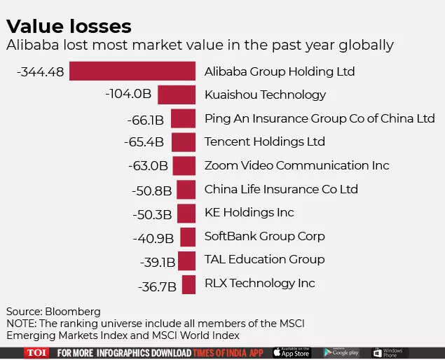 Yet one year on, the technology titan has lost a whopping $344 billion in market capitalization -- the biggest wipe-out of shareholder value globally, according to data compiled by Bloomberg. Shortly after the now infamous speech, Beijing suspended the listing of its fintech arm Ant Group and has since followed up with a widespread crackdown on the country’s most vibrant sectors -- causing Chinese stocks to tank.