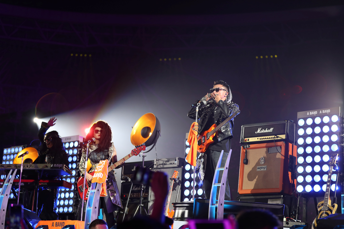 Toward the end of the ceremony, Ma, co-founder Lucy Peng, and CEO of Alibaba's technology committee Wang Jian donned rock star-style leather jackets and wigs to perform Chinese pop songs. They were joined by co-founder Joe Tsai dressed in Marilyn Monroe style white dress and a blonde wig.