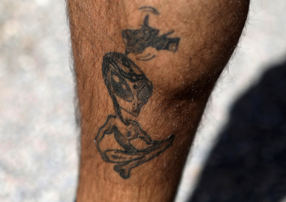 An attendee shows an alien themed tattoo as an influx of tourists responding to a call to 'storm' Area 51, a secretive U.S. military base believed by UFO enthusiasts to hold government secrets about extra-terrestrials, is expected in Rachel, Nevada, U.S. September 19, 2019. REUTERS/Jim Urquhart