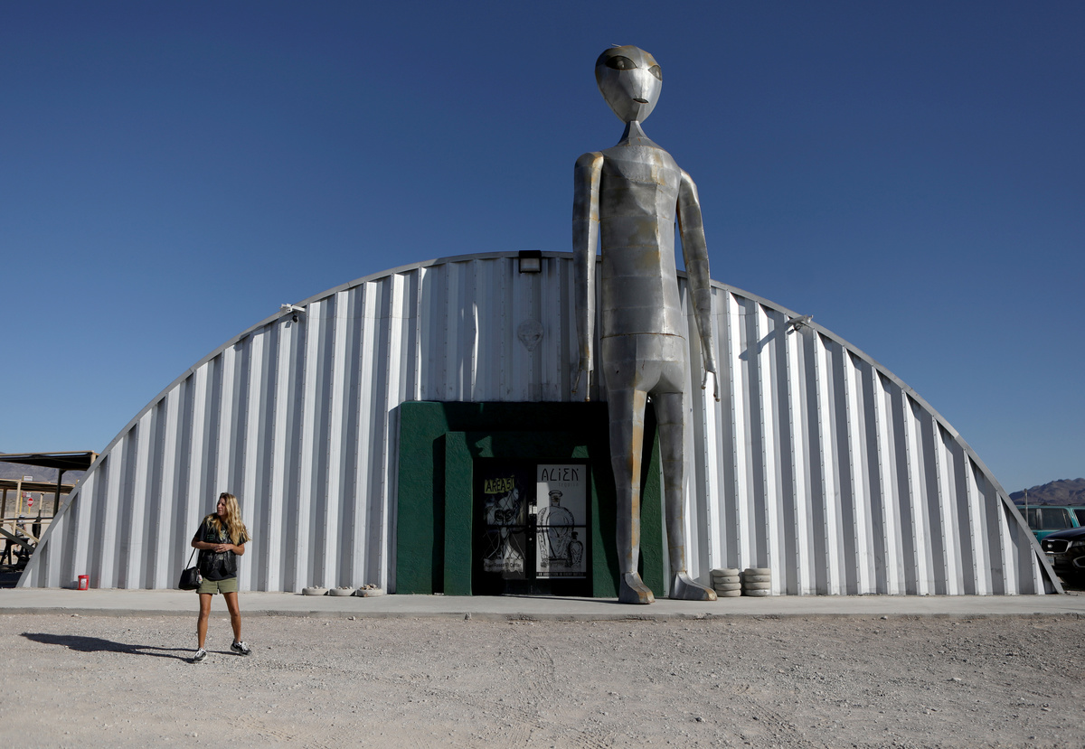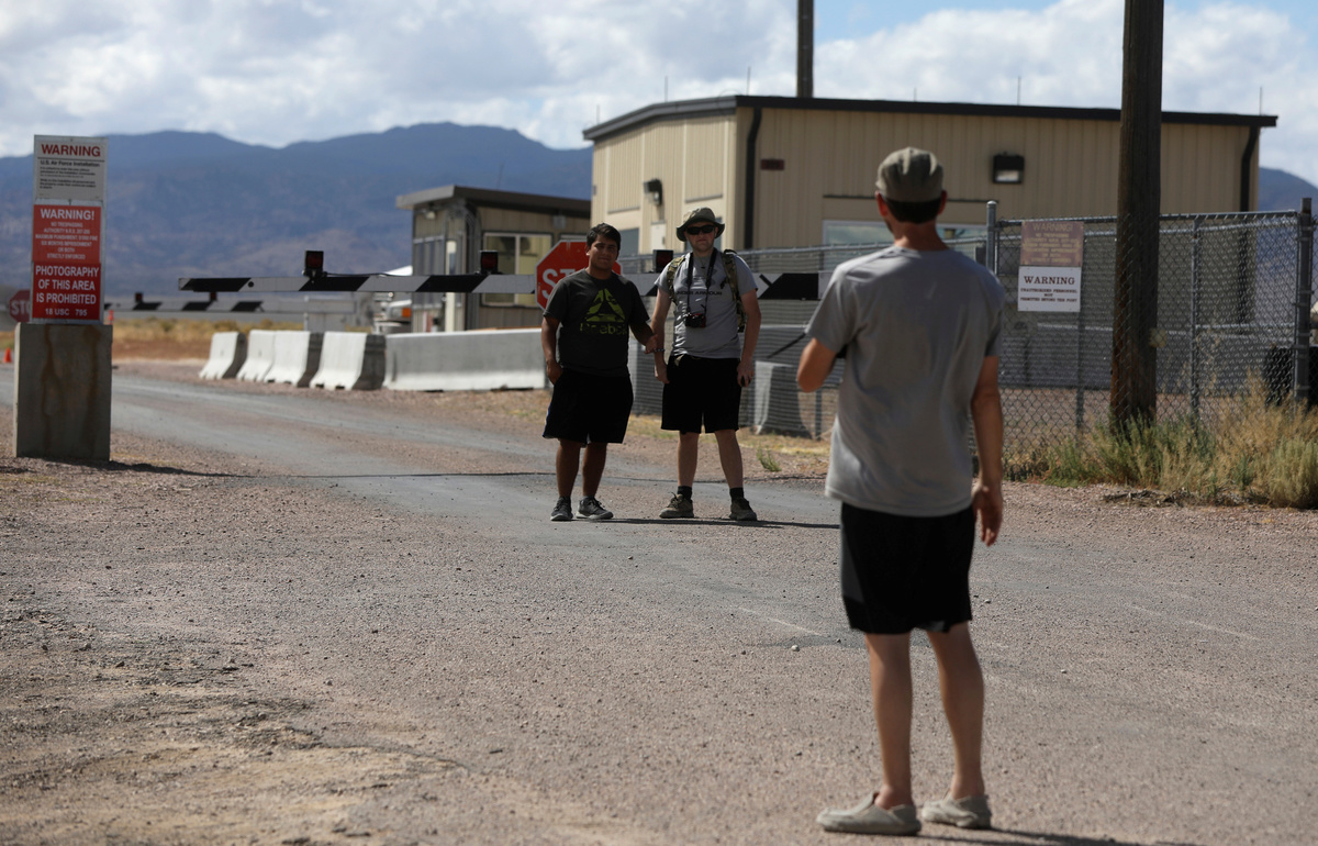 Attendees arrive at the Little A'Le'Inn as an influx of tourists responding to a call to 'storm' Area 51, a secretive U.S. military base believed by UFO enthusiasts to hold government secrets about extra-terrestrials, is expected in Rachel, Nevada, U.S. September 19, 2019. REUTERS/Jim UrquhartA parking sign at the Little A'Le'Inn as an influx of tourists responding to a call to 'storm' Area 51, a secretive U.S. military base believed by UFO enthusiasts to hold government secrets about extra-terrestrials, is expected in Rachel, Nevada, U.S. September 19, 2019. REUTERS/Jim UrquhartRazor wire and security cameras at the entrance to Area 51 as an influx of tourists responding to a call to 'storm' Area 51, a secretive U.S. military base believed by UFO enthusiasts to hold government secrets about extra-terrestrials, is expected in Rachel, Nevada, U.S. September 19, 2019. REUTERS/Jim UrquhartClosed gates at the entrance to Area 51 as an influx of tourists responding to a call to 'storm' Area 51, a secretive U.S. military base believed by UFO enthusiasts to hold government secrets about extra-terrestrials, is expected in Rachel, Nevada, U.S. September 19, 2019. REUTERS/Jim UrquhartPeople take photos at the entrance to Area 51 as an influx of tourists responding to a call to 'storm' Area 51, a secretive U.S. military base believed by UFO enthusiasts to hold government secrets about extra-terrestrials, is expected in Rachel, Nevada, U.S. September 19, 2019. REUTERS/Jim UrquhartRazor wire and security cameras at the entrance to Area 51 as an influx of tourists responding to a call to 'storm' Area 51, a secretive U.S. military base believed by UFO enthusiasts to hold government secrets about extra-terrestrials, is expected in Rachel, Nevada, U.S. September 19, 2019. REUTERS/Jim UrquhartLittle A'Le'Inn proprietor Connie West talks about preparations as an influx of tourists responding to a call to 'storm' Area 51, a secretive U.S. military base believed by UFO enthusiasts to hold government secrets about extra-terrestrials, is expected in Rachel, Nevada, U.S. September 19, 2019. REUTERS/Jim UrquhartMilitary equipment is visible from the entrance to Area 51 as an influx of tourists responding to a call to 'storm' Area 51, a secretive U.S. military base believed by UFO enthusiasts to hold government secrets about extra-terrestrials, is expected in Rachel, Nevada, U.S. September 19, 2019. REUTERS/Jim UrquhartRazor wire and security cameras at the entrance to Area 51 as an influx of tourists responding to a call to 'storm' Area 51, a secretive U.S. military base believed by UFO enthusiasts to hold government secrets about extra-terrestrials, is expected in Rachel, Nevada, U.S. September 19, 2019. REUTERS/Jim UrquhartRazor wire and security cameras at the entrance to Area 51 as an influx of tourists responding to a call to 'storm' Area 51, a secretive U.S. military base believed by UFO enthusiasts to hold government secrets about extra-terrestrials, is expected in Rachel, Nevada, U.S. September 19, 2019. REUTERS/Jim Urquhart