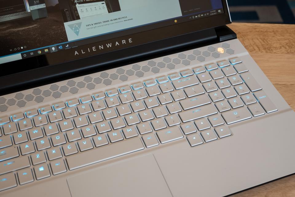 My first question when I sat down with this laptop: What color are the switches? Cherry MX Red? Blue? Brown? The answer is: None of the above. These switches are custom designed for the m17 R4 and don’t conform to the usual Cherry color chart, though if pressed (no pun intended), I’d say they behave most like Blues, with a satisfying click at the top of the travel.