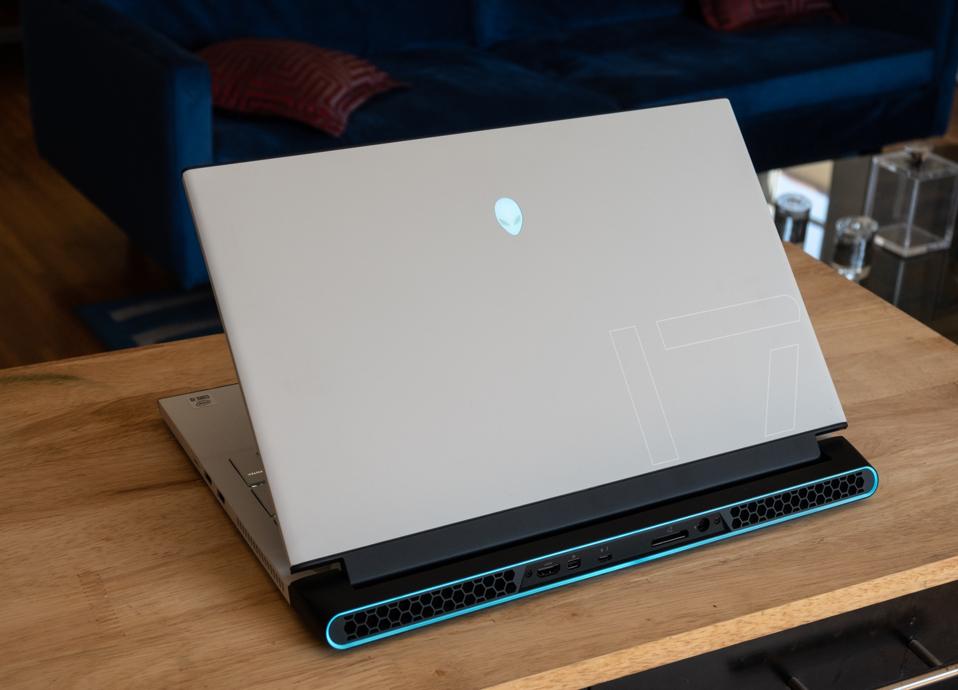 Alienware computers are rarely subtle, but the m17 aesthetic is surprisingly mature without losing its fun vibe. It has the same overall look as last year’s m17 R3—the so-called “Legend” design—that features a flared spaceship-like LED-illuminated exhaust port in the back.