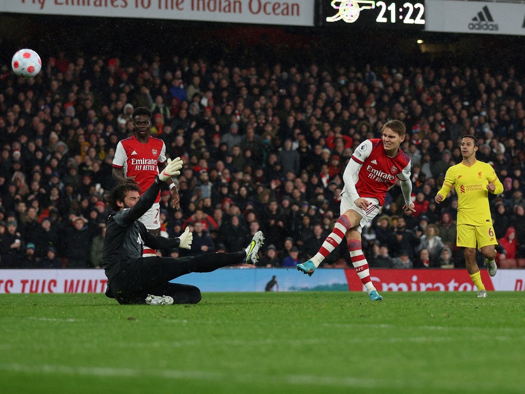 It was the case yet again here: even with Odegaard’s chance, even with more possession in certain stretches and even with the same amount of shots as Liverpool, the Gunners did not fashion any clear openings, other than the one presented directly to them.