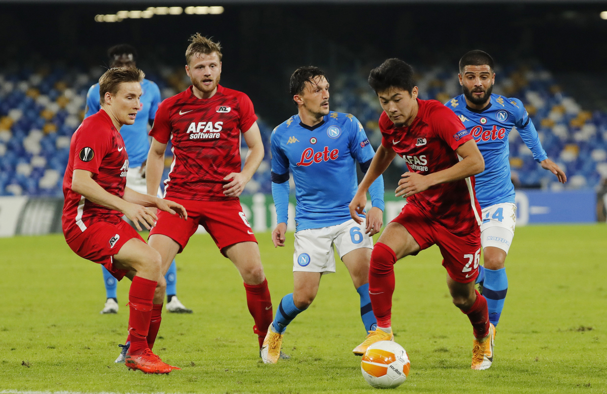 Dutch team Alkmaar were under pressure for the whole game as Napoli dominated possession and peppered their goal but Dani de Wit scored in the 57th minute for a stunning victory in Group F.