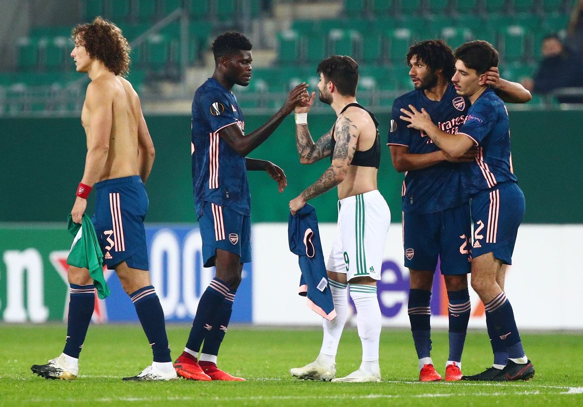 Arsenal, who have not claimed a European trophy since lifting the old Cup Winners' Cup in 1994, went behind at Rapid Vienna but defender David Luiz and striker Pierre-Emerick Aubameyang struck late on for a 2-1 Group B win.