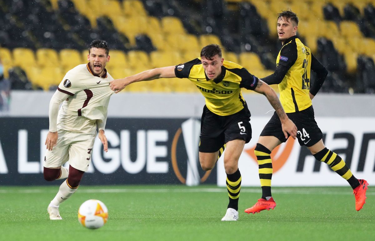 AS Roma came back from a goal down to beat Swiss side Young Boys 2-1 away thanks to two goals in five second-half minutes by Bruno Peres and Marash Kumbulla in Group A.