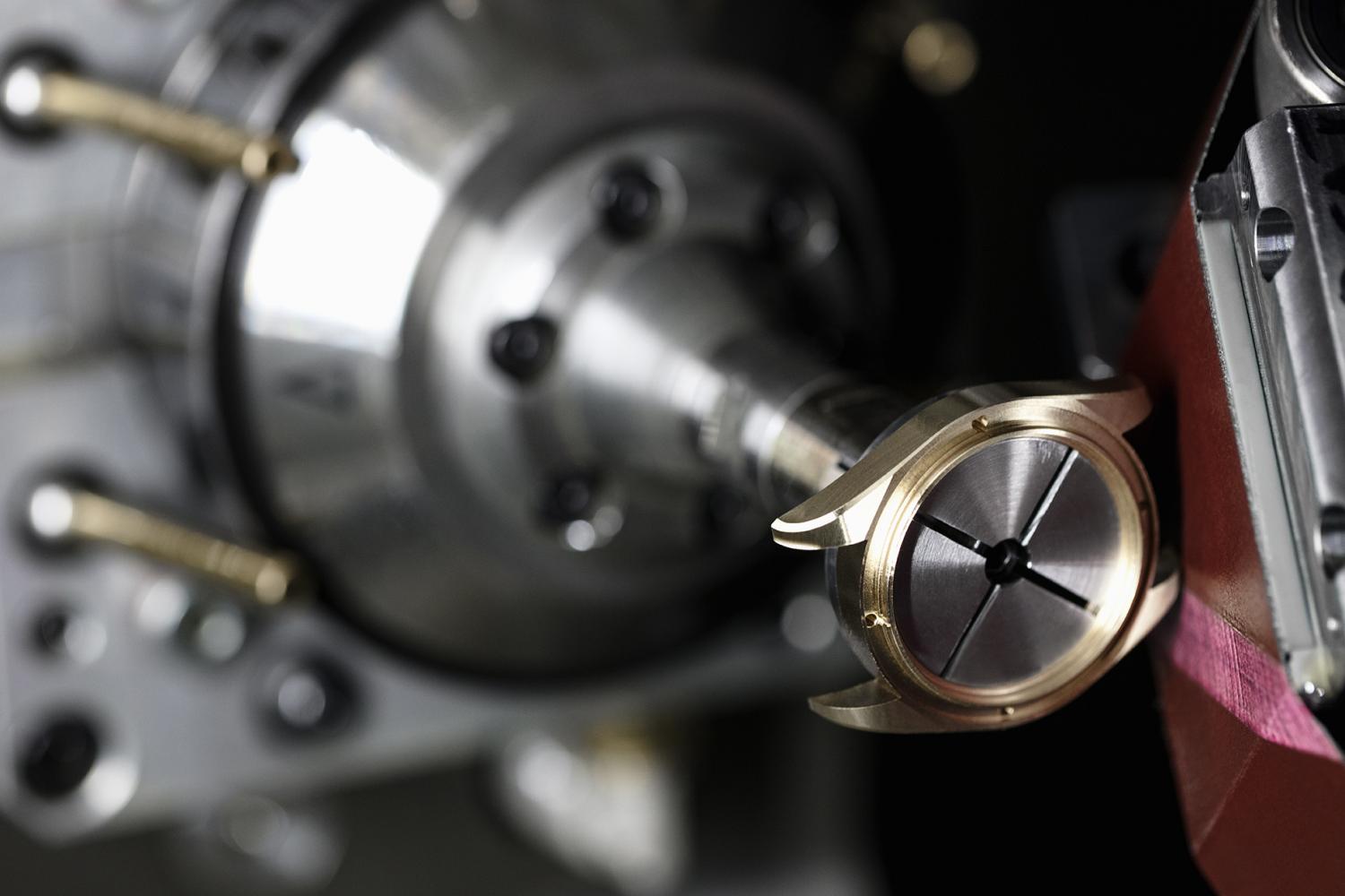 As soon as it emerges from the furnace, this cylinder of raw material instantly adopts the rough form of the watch middle case. From this point, no fewer than 40 additional steps are required to obtain a bronze case.